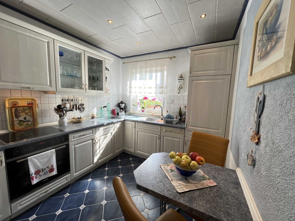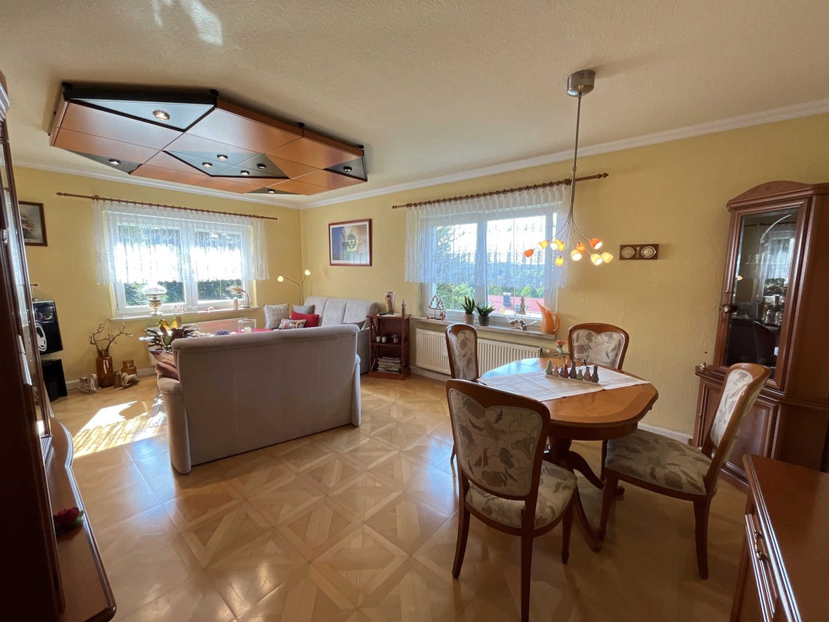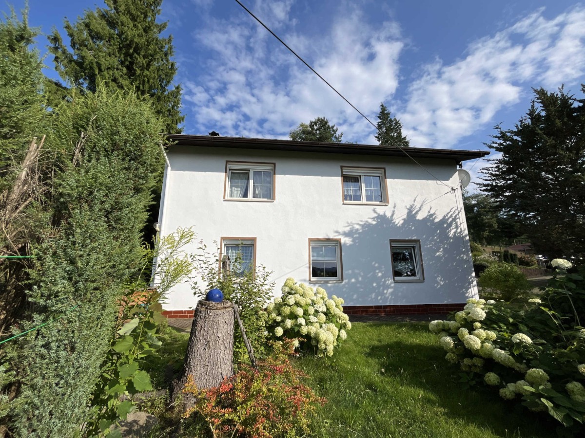 Das Einfamilienhaus steht an einem kleinen Hang, daher haben sowohl das Erdgeschoss, als auch das Obergeschoss einen direkten Zugang zum Garten ohne Stufen. Im Erdgeschoss befinden sich 3 Zimmer und ein Bad. Die hinteren Zimmer sind Durchgangszimmer, dies lässt sich durch den Einbau von Türen zum Flur relativ einfach ändern. Im Obergeschoss stehen Wohnzimmer, Schlafzimmer und ein Zimmer mit einem Kaminofen zur Verfügung. Die Küche verfügt über eine Sitzmöglichkeit. Die Einbauküche wird kostenlos übergeben. Das Bad besitzt Wanne und Dusche. Im Wohnzimmer wurde ein Parkett verlegt. Sehr praktisch ist auch der Windfang am Hauseingang.