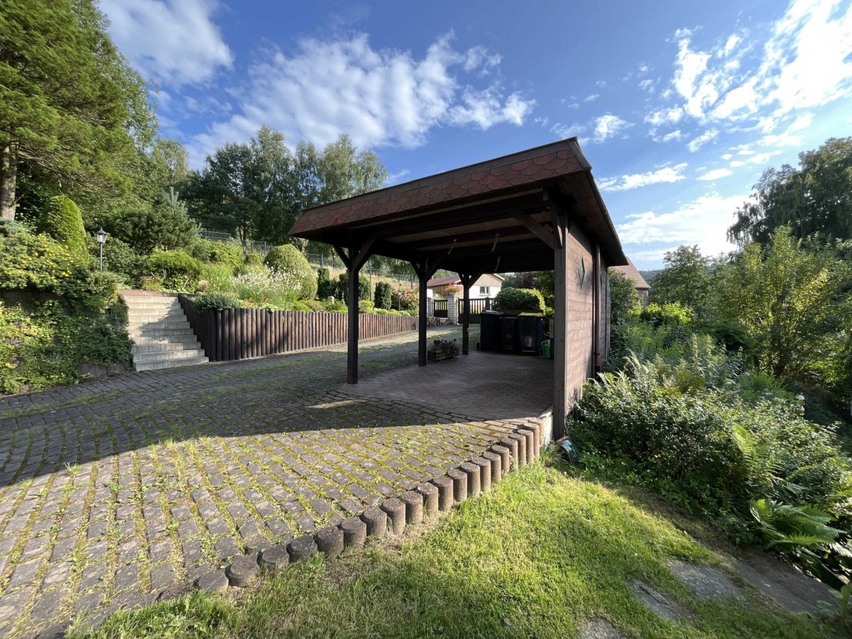 Für Fahrzeuge stehen die Garage im Haus und ein Carport neben der Einfahrt zur Verfügung. Die Zufahrt ist gepflastert.
