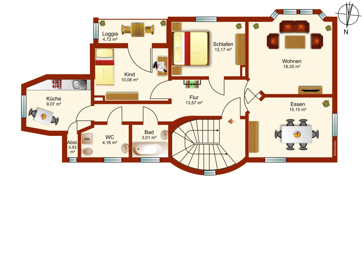 Dachgeschoss: 4-Zimmerwohnung, ca. 86,57 m²